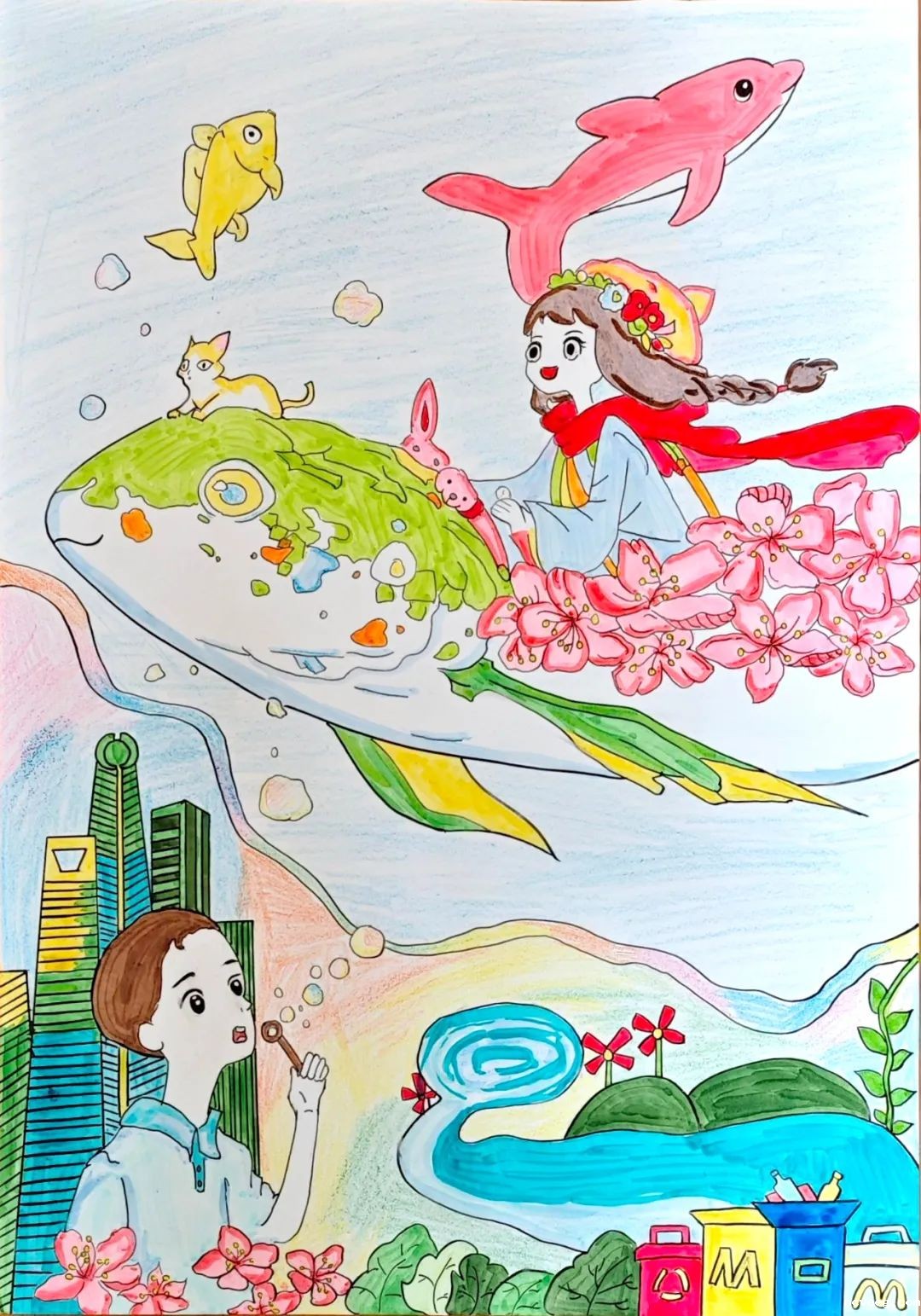 本次展览旨在为福利机构青少年搭建一个艺术展示平台,让他们通过画笔展现自我,为儿童福利事业的发展及新时代青少年综合素养的培育注入新活力。展出的百余幅作品中,每一幅都承载着青少年对自然的纯真感知——孩子们将对山川草木的细致观察、对美好生态的真挚向往融入色彩与线条,既展现出独特的艺术创造力,更传递出对人与自然和谐共生的质朴理解。